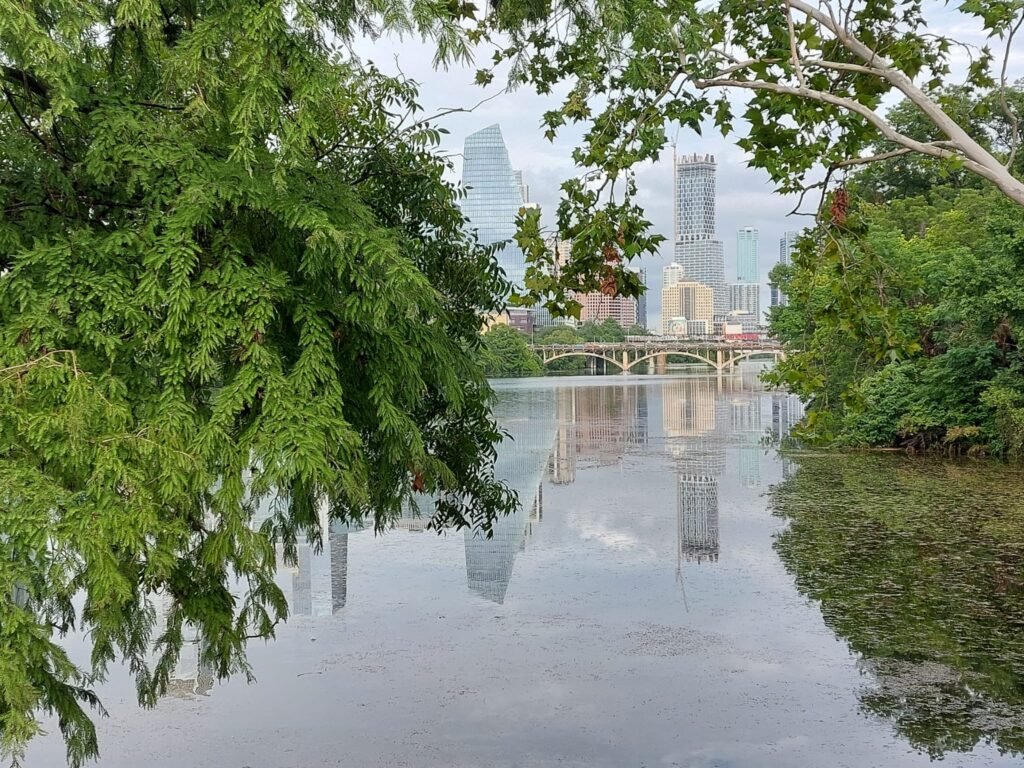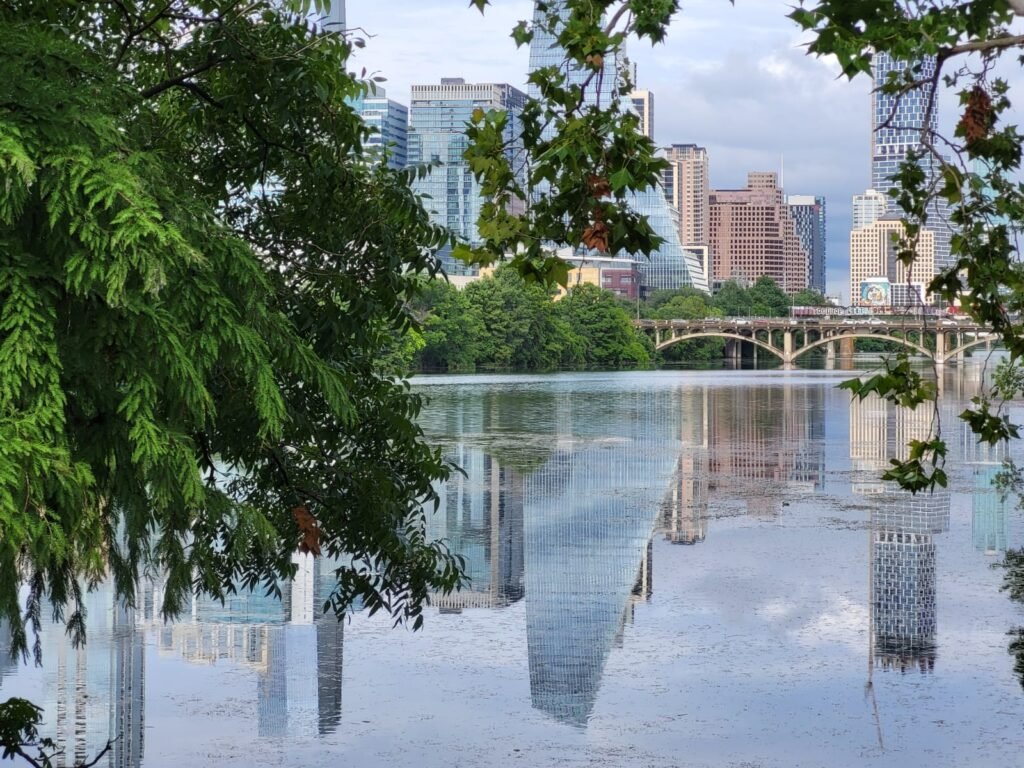Le Barton Springs Pool, piscine naturelle dans le Zilker Park d’où vous aurez une magnifique vue sur le downtown (centre ville) se reflétant dans l’eau