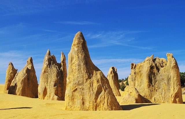 Direction le Nambung National Park et ses formations rocheuses spectaculaires : les Pinnacles. Le désert doré au coucher du soleil est un spectacle inoubliable.